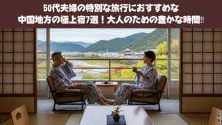 旅行50代夫婦の特別な旅行におすすめな中国地方の極上宿7選!大人のための豊かな時間‼ 50代夫婦の特別な旅行に。中国地方で心から満足できる宿を7軒厳選しました。絶景温泉や美食、最高のおもてなしが魅力の宿を徹底比較。お二人の新たな物語の舞台となる、理想の宿がきっと見つかります。2025.09.20旅行