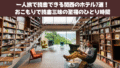 日常の喧騒から離れて、ただひたすらにページをめくることに集中できる時間があったら、どれほど素敵でしょうか。ひとり旅は、自分自身と向き合い、心を満たすための贅沢な時間。その最高の相棒が「本」であるならば、滞在先は単なる宿ではなく、あなただけの特別な書斎であるべきです。